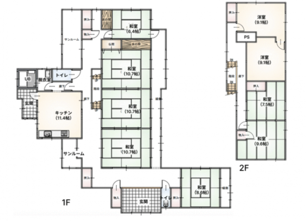 大型シャッター付きガレージ♪和室7部屋・洋室2部屋を備えた9LDK♪